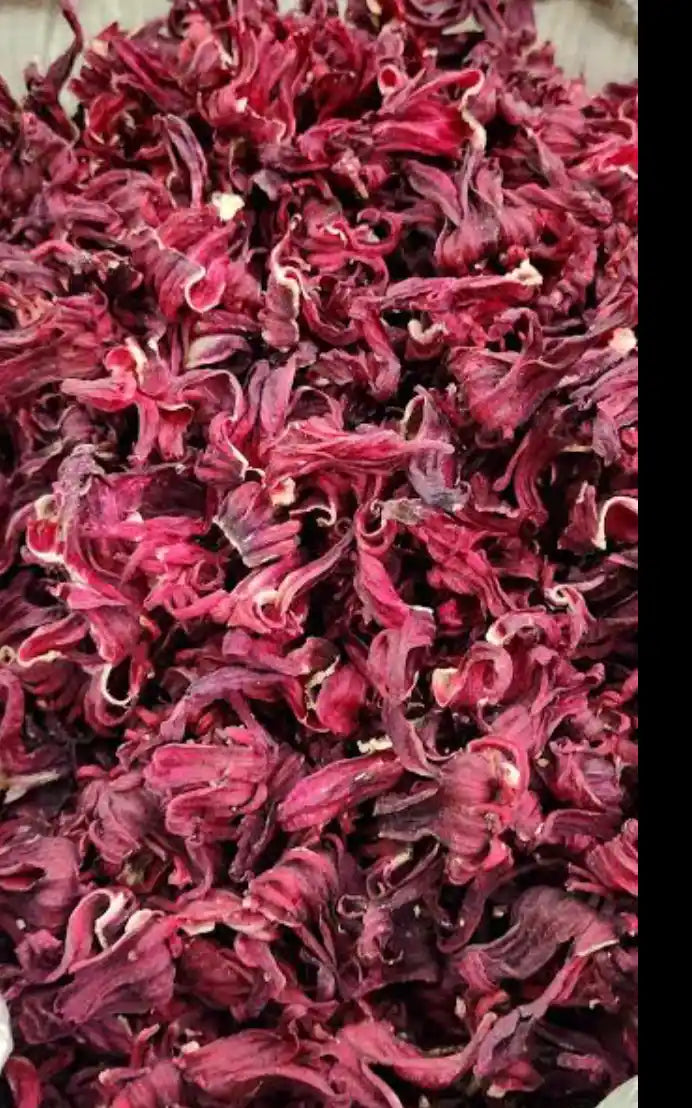 Flor seca de hibisco, de color rojo intenso y aroma ligeramente frutal. Al hervirse, libera un sabor ácido y refrescante, con propiedades diuréticas y antioxidantes. En su forma artesanal, se selecciona y seca cuidadosamente para conservar su color y potencia. Se usa en aguas frescas, infusiones, mermeladas, y como base para vinagretas o postres.