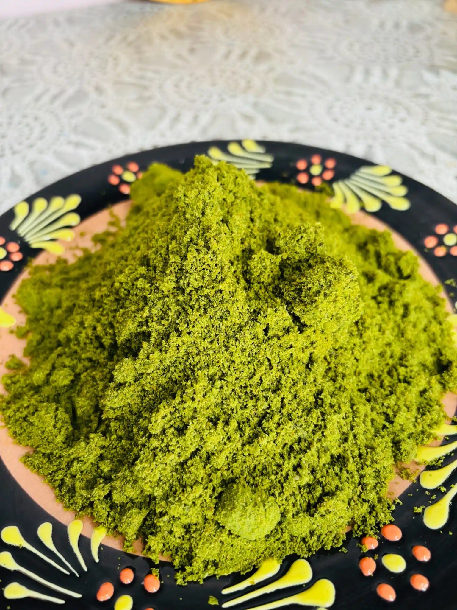 Es una mezcla deshidratada de ingredientes típicos del mole verde, como: