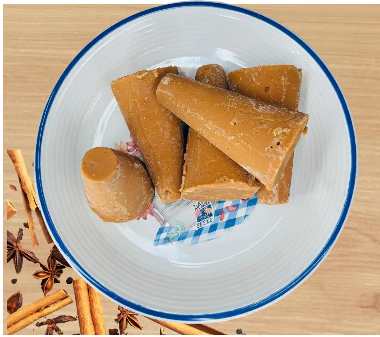 Endulzante tradicional mexicano elaborado a partir de jugo de caña de azúcar sin refinar, cocido lentamente hasta formar una masa espesa que se moldea en conos alargados. Su color va del dorado oscuro al marrón profundo, con textura sólida y quebradiza. Tiene un sabor intenso, con notas de caramelo, melaza y tierra dulce. Rico en minerales como hierro, calcio y magnesio, es una alternativa natural al azúcar procesada. Se usa en atoles, moles, café de olla, postres típicos y fermentaciones artesanales.